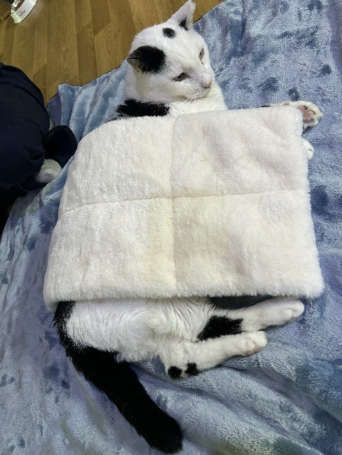 폭신한 방석과 이불을 제일 좋아하는 통닭이.