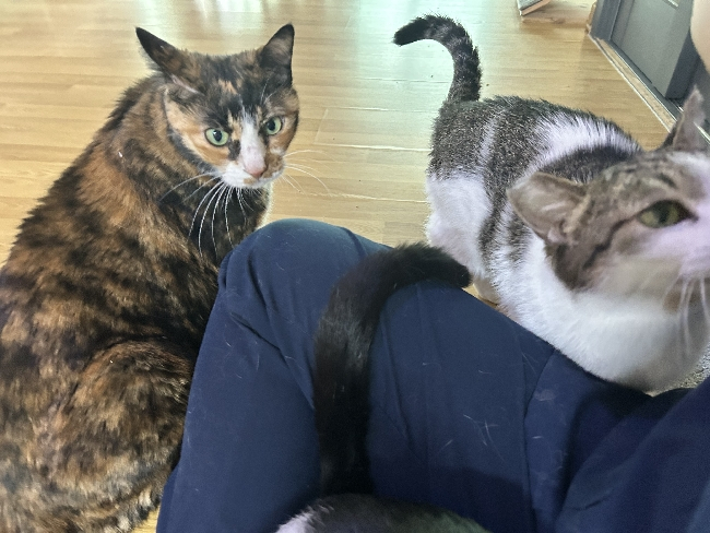 최근 입사한 신입냥원 애용이가 깨물이네에 자주 놀러오고 있어요.