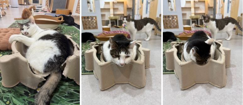 까비가 숨은 스크래쳐 박스도 아무도 안들어갔다가 외관이 망가지니 사용하는 중입니다.