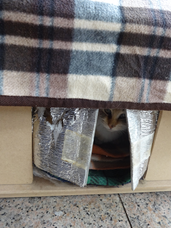역삼1동에서 활동하는 길냥이 못난이 4남매 사진입니다.... 장소제공은 저희집 정원....엄마냥 사진도 있어요... 겨울이라 집도 만들어줘서 들어가 있어요.