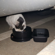 제가 밥주러 가니 반갑다고 냥냥 거리며 주변에 머무르길래 알아보았습니다.