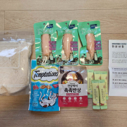 안녕하세요~~ 입맛 회복 키트 받고 감사히 급여 후 후기 남깁니다. 올 여름 무더위를 잘 이겨낸 길아가들의 몸보신을 위해 캐츠맘 트릿, 순수닭가슴살, 템테이...
