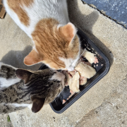 보내주신 후원품으로 학교에 있는 아이들 챙겨먹였어요. 대학근처가 산이 많아 냥이들이 많이 있어요. 수업들어가는 입구쪽에 오는 아이들에게 줬는데...